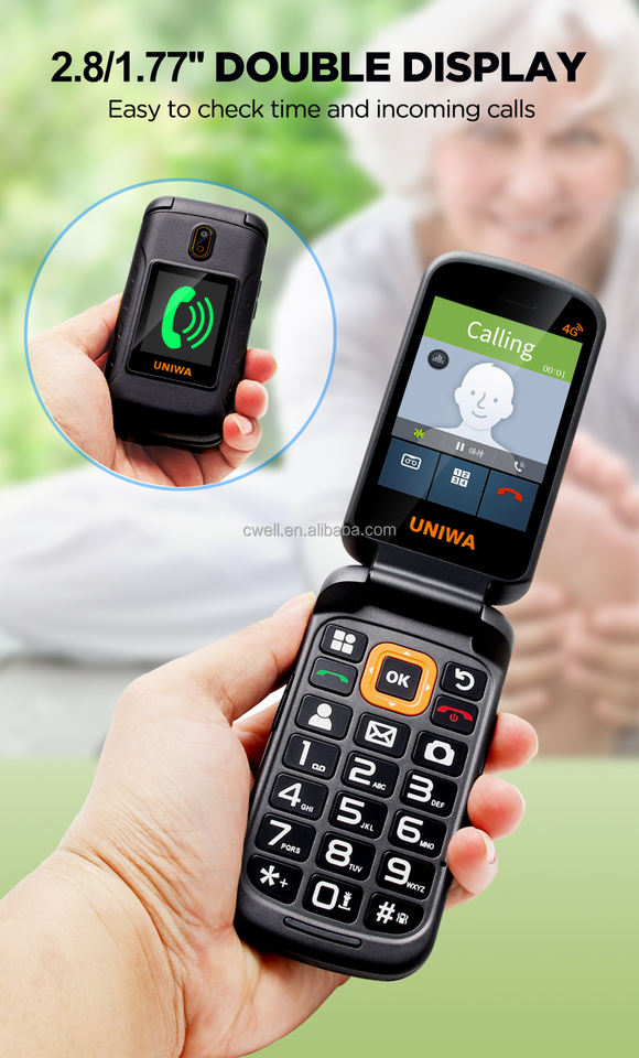 V909T ขายส่ง4G เฒ่าพลิกโทรศัพท์มือถือหน้าจอคู่แบตเตอรี่ขนาดใหญ่ปุ่มใหญ่ปุ่มกดคุณลักษณะโทรศัพท์มือถือปุ่มกดโทรศัพท์กับ SOS
