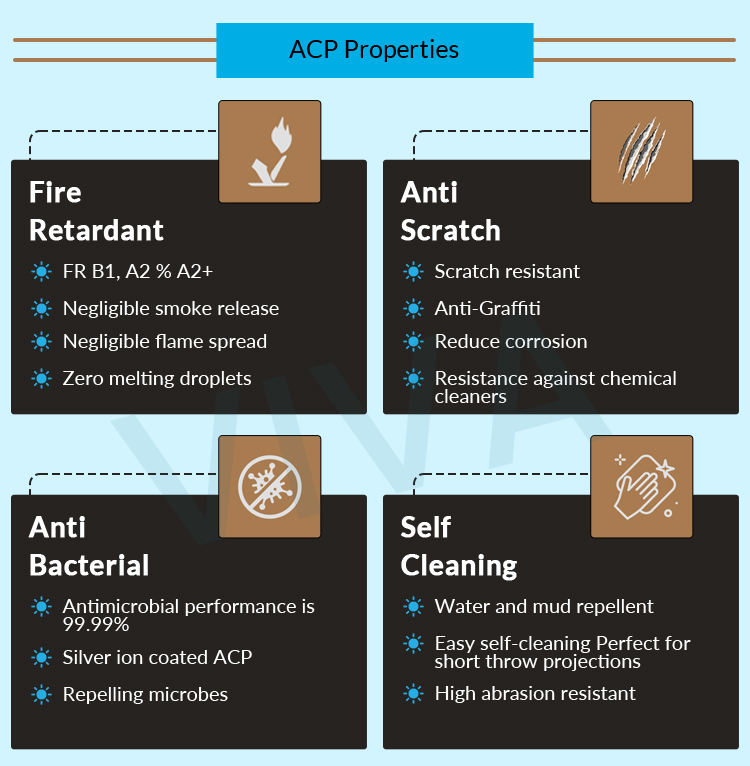ฉนวนกันความร้อน, ทนต่อสภาพอากาศ, ฉนวนกันเสียง/อะคูสติก, ป้องกันแบคทีเรียป้องกันรอยขีดข่วนสารหน่วงไฟทำความสะอาดตัวเอง