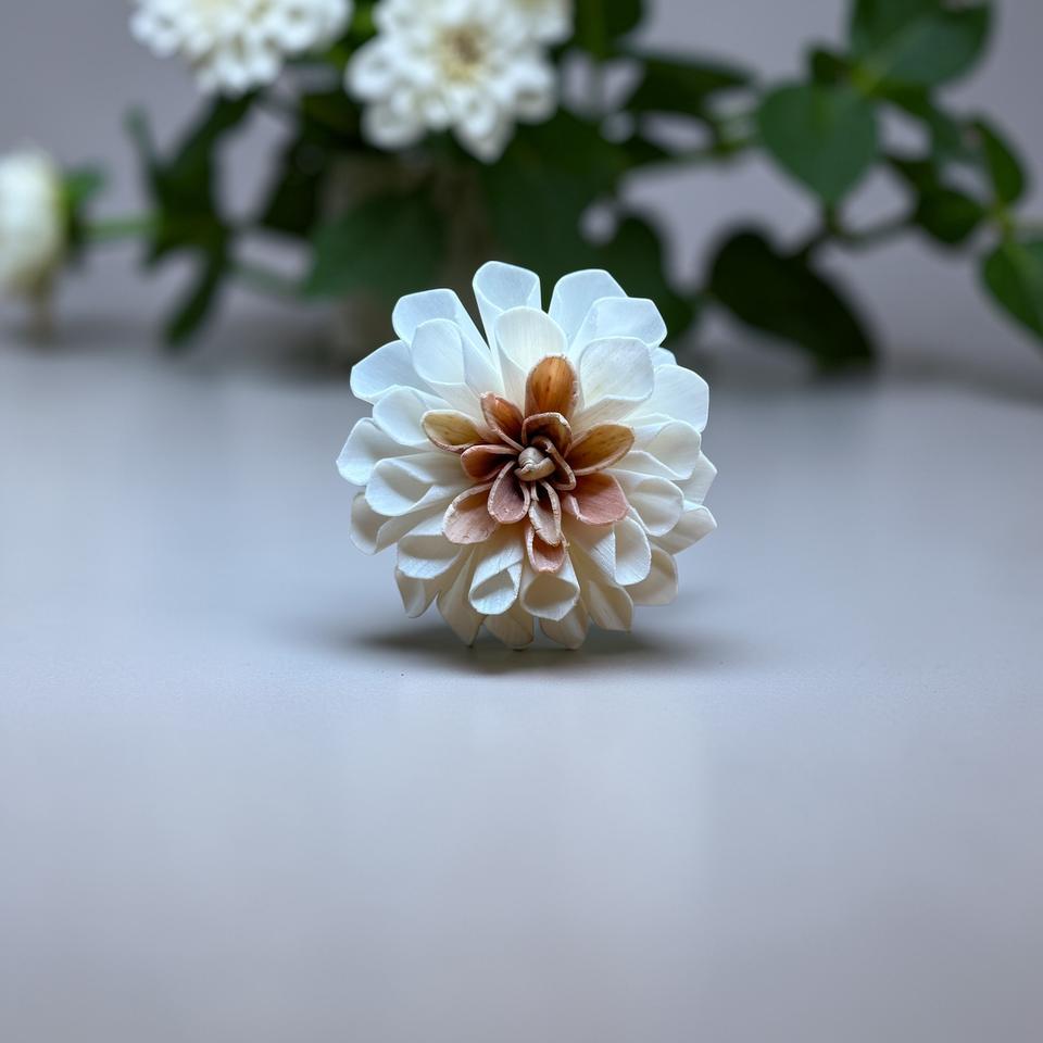 ดอกไม้ไม้โซล่า ยี่ห้อ VADEE SOLA WOOD FLOWER ทำมือ ดอกดาเลียสีพีชครีม ขนาด 8.5 ซม. แกนไฟเบอร์เซสบานียา