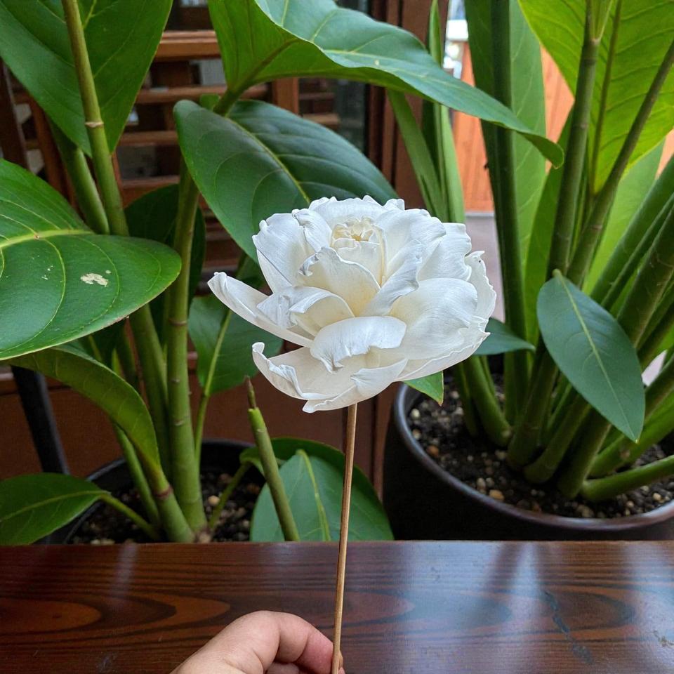 ดอกไม้โซล่าวู้ด VADEE SOLA WOOD FLOWER ทำมือ ดอกกุหลาบสีงาช้างที่ยั่งยืนได้ ขนาด 8.5 ซม. ทำจากเส้นใยพืชเซสบานียา จากประเทศไทย