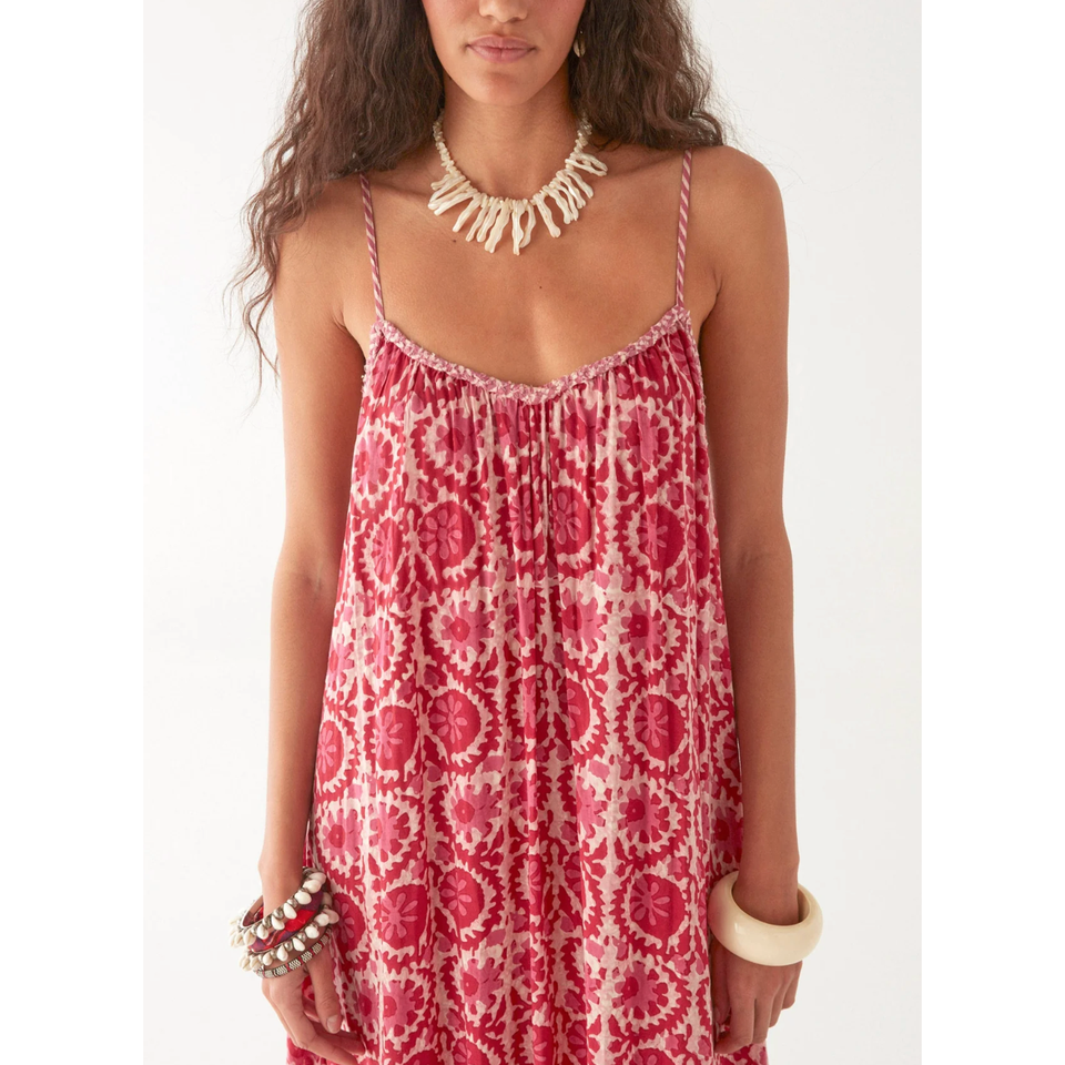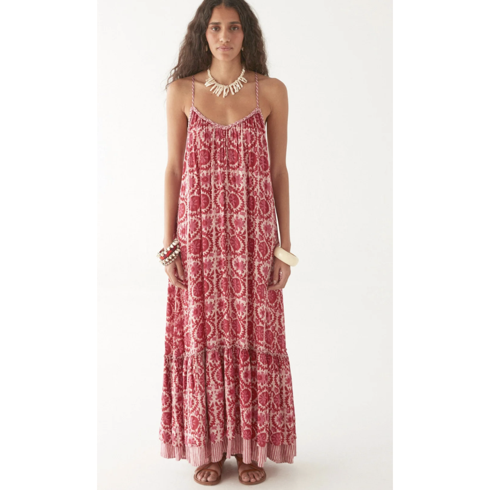 ชุดเดรสยาวทรงหลวม VALERIA Flamingo Grooves-Boho Party แบบทางการ สายเดี่ยว ผ้าทอ ระบายอากาศได้ดี