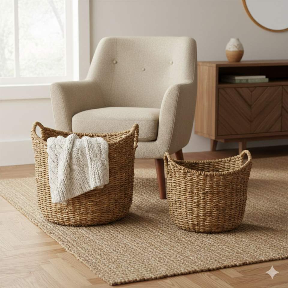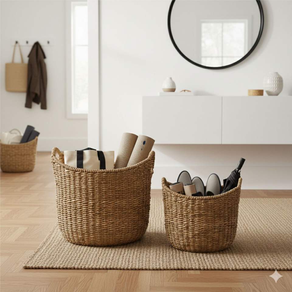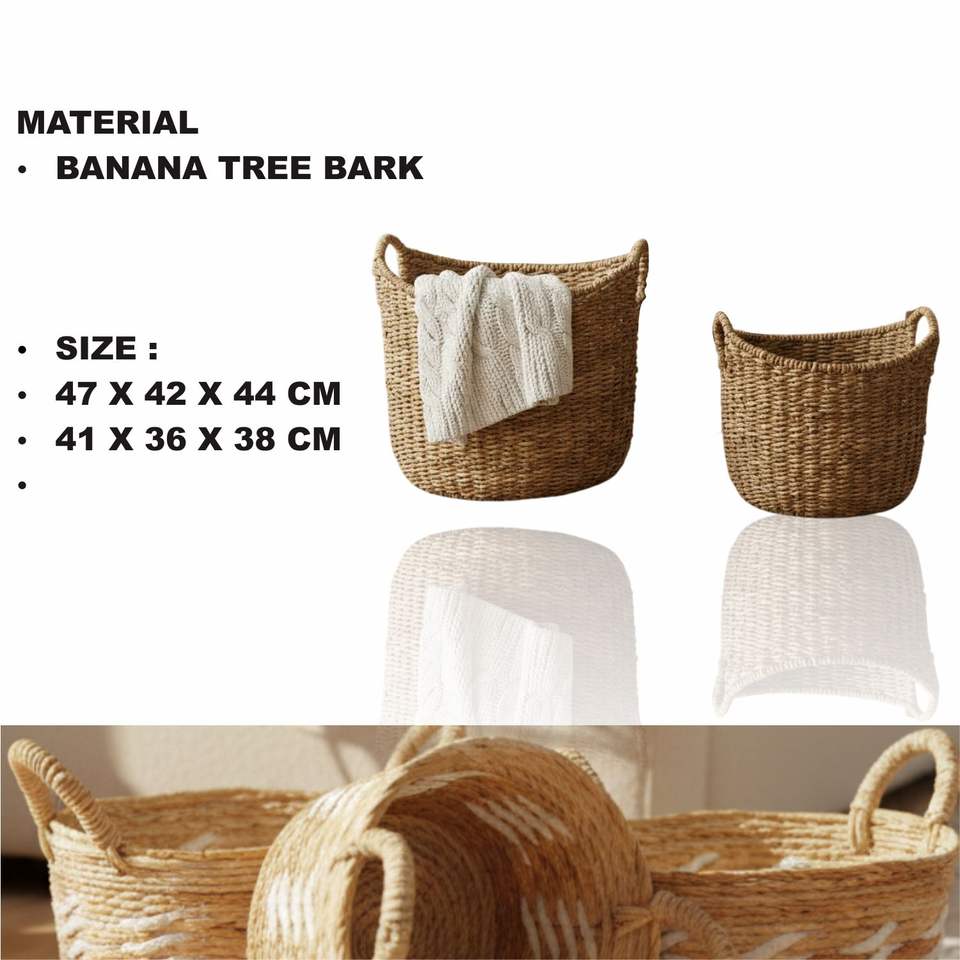 ชุดตะกร้าหุบเขาสำหรับงานหัตถกรรมเปลือกต้นกล้วย2ชิ้น