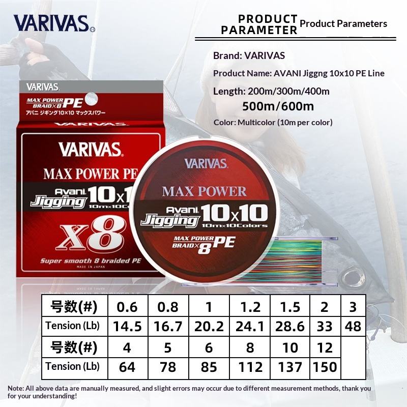สายเอ็นตกปลา VARIVAS ของแท้จากญี่ปุ่น แบบถัก 8 เส้น 300/600 เมตร สาย PE MAX POWER10 สีสันสดใส สำหรับตกปลาทะเล ใช้กับเหยื่อเหล็ก