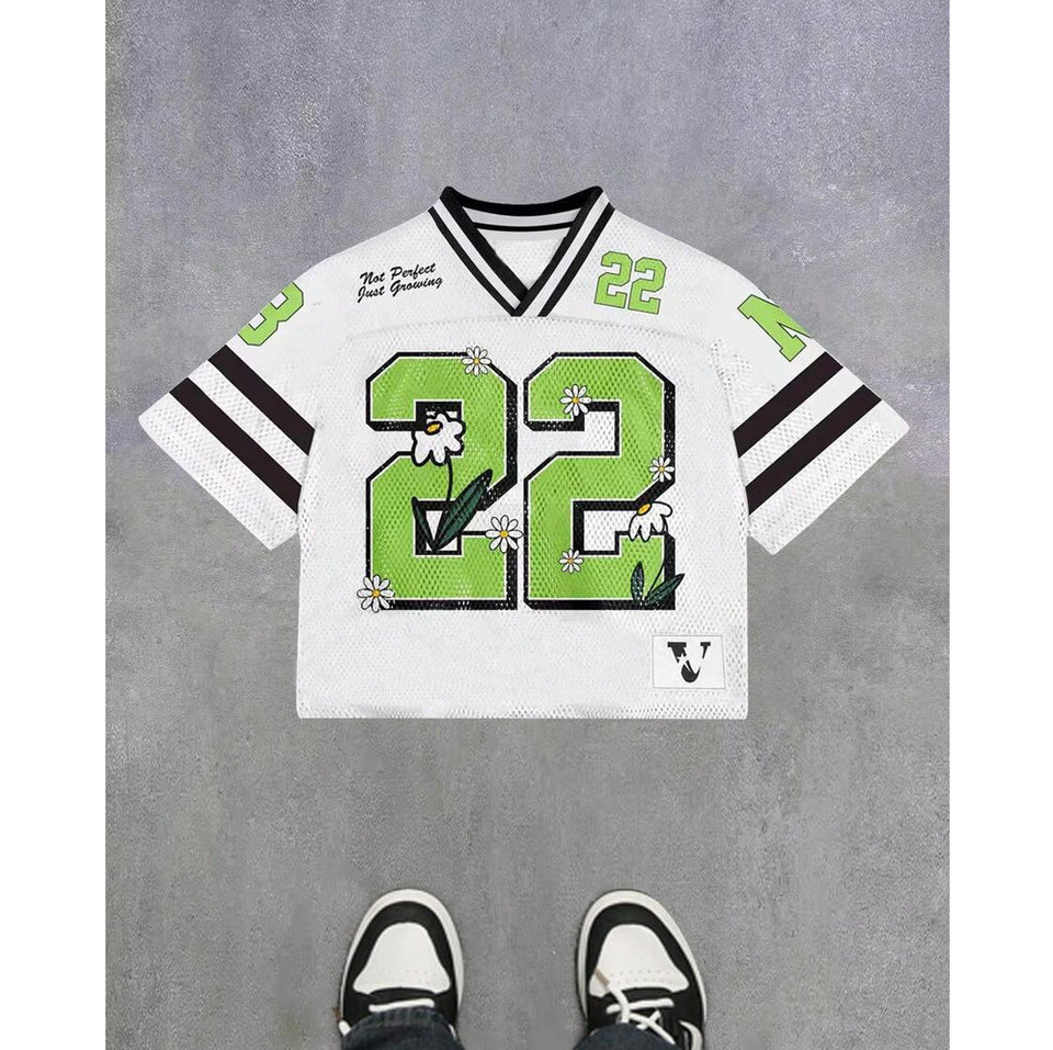 Varldens เสื้อฟุตบอลผ้าตาข่ายโพลีเอสเตอร์แบบย้อนยุคเสื้อคอวีลายดอกไม้22ไซส์ S-5XL สตรีทแวร์คุณภาพสูง