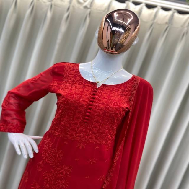 ชุดเสื้อและกางเกงปักลาย Georgette ดีไซน์เนอร์ VASTRA COTTAGE พร้อมผ้าคลุมไหล่ ผ้าไมโครอินเนอร์ สำหรับงานปาร์ตี้ ชุดสไตล์ชาติพันธุ์