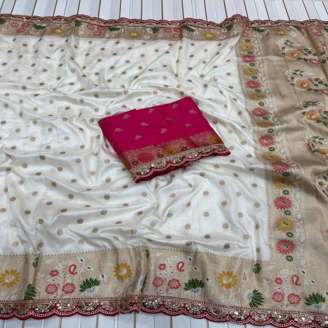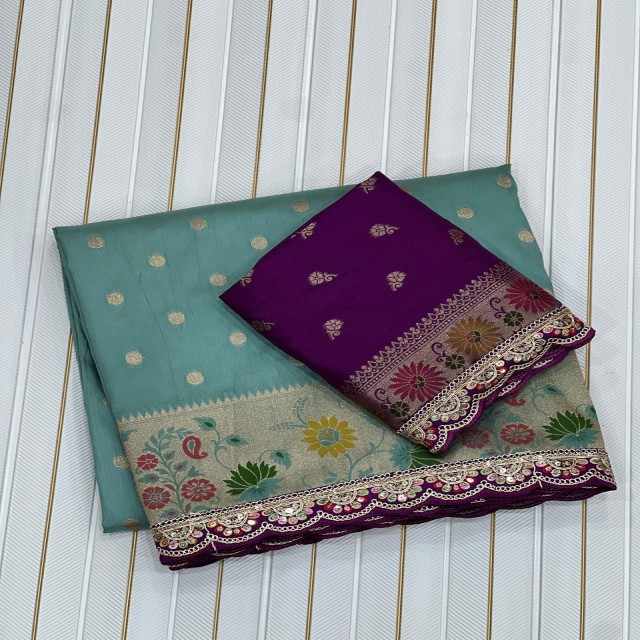 ชุดส่าหรีผ้าไหมโดลา VASTRA COTTAGE พร้อมงานปักลายเลื่อม ขอบเสื้อปักลายตัดกัน พร้อมเสื้อลูกไม้ปักลาย สำหรับงานปาร์ตี้สไตล์ชาติพันธุ์