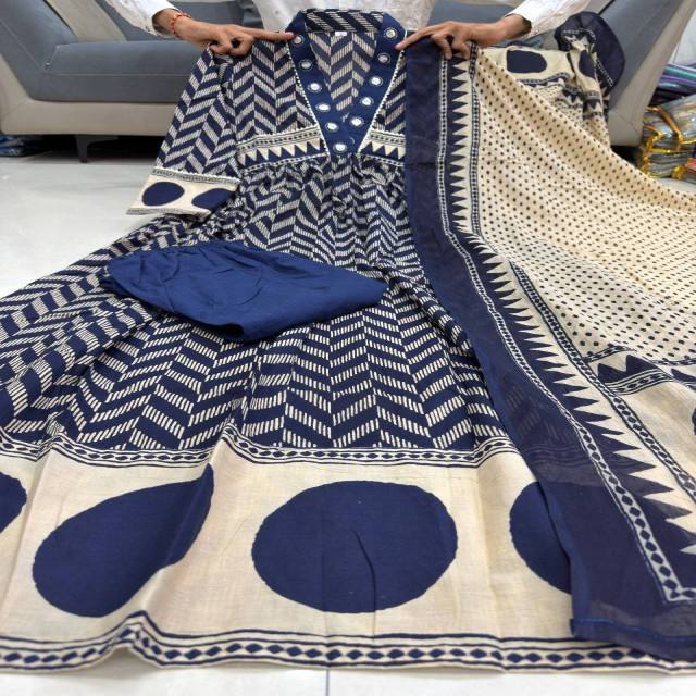 ชุดคุร์ตีผ้าฝ้ายพิมพ์ลายทรงกลม VASTRA COTTAGE ดีไซน์หรูหรา พร้อมกางเกงปักลายเต็มตัว และผ้าคลุมไหล่ผ้าฝ้าย