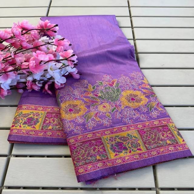 ผ้าส่าหรี VASTRA COTTAGE รุ่น Fendy ผ้าซาตินพิมพ์ลายดอกไม้หลากสีแบบดิจิทัล พร้อมงานปักมือและงานฉลุลาย Aari ที่ขอบผ้า ดีไซน์เนอร์แวร์