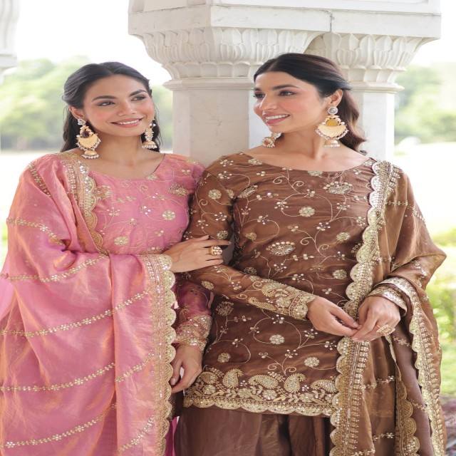 ชุดเซ็ต VASTRA COTTAGE Fendy Sharara ประดับเลื่อมหรูหรา ปักลาย Zari แขนยาว คอกลม เสื้อท่อนบนเอวยางยืด กางเกง Sharara พร้อมผ้าคลุมไหล่