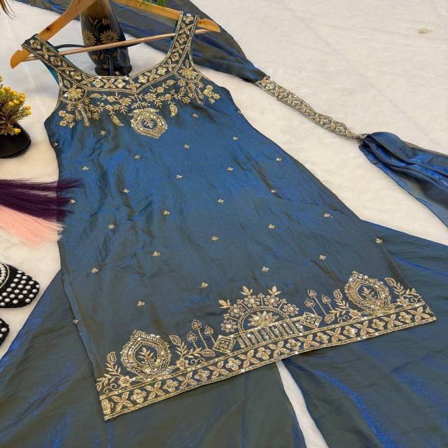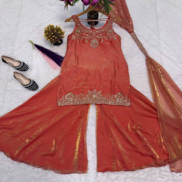 Vastra Cottage fendy Silk TOP plazo dupatta ชุดงานด้วยมือปักหลายเข็มชุด zari ทำงานปาร์ตี้งานแต่งงาน