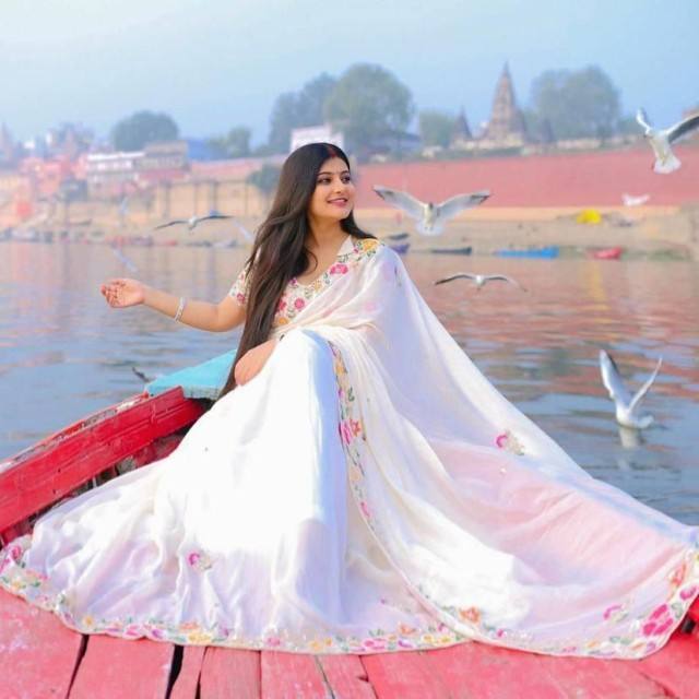 ผ้าซิลค์รังโกลีเนื้อหนา VASTRA COTTAGE พร้อมงานปักลายด้วยด้ายหลากสี ขอบผ้าแบบคัตเวิร์ค พร้อมเสื้อคลุมดีไซน์เนอร์