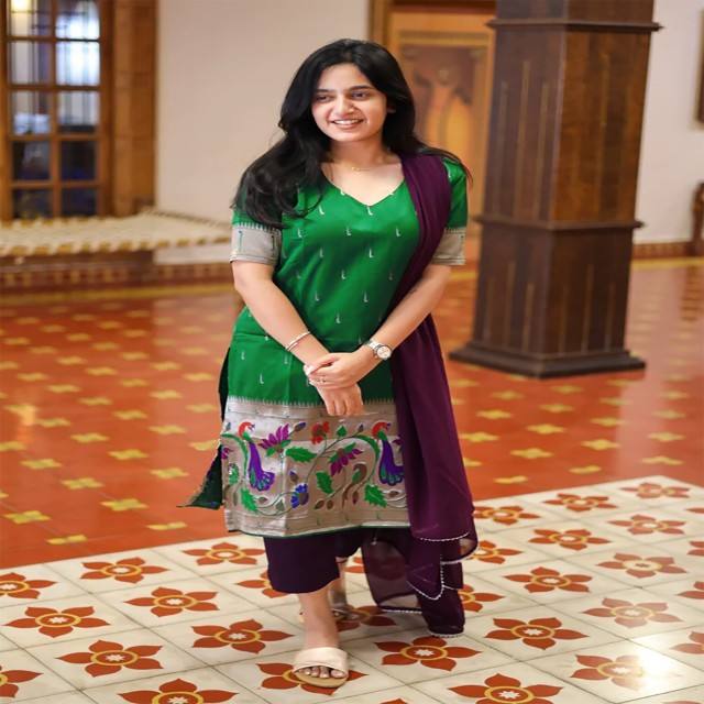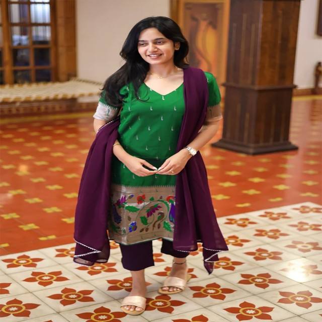 ชุดคุร์ตะผ้าไหมแจ็คการ์ด VASTRA COTTAGE พร้อมผ้าคลุมไหล่จอร์เจตต์ สีเขียว ชุดสำหรับผู้หญิง สไตล์ชาติพันธุ์ เหมาะสำหรับงานปาร์ตี้