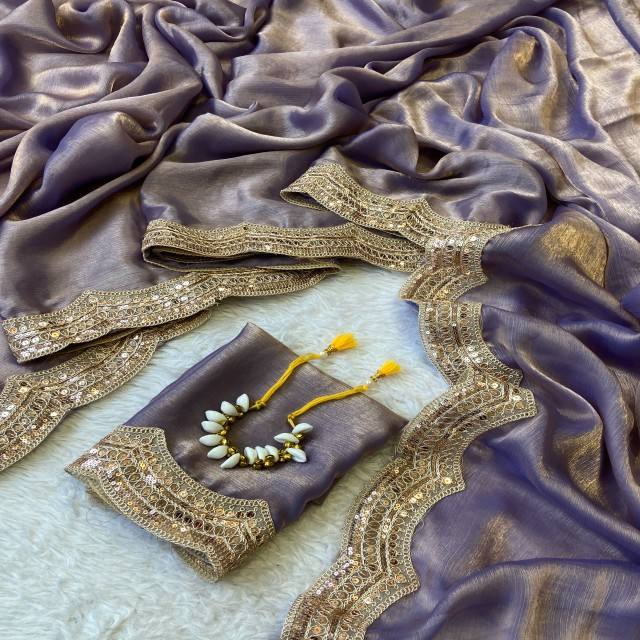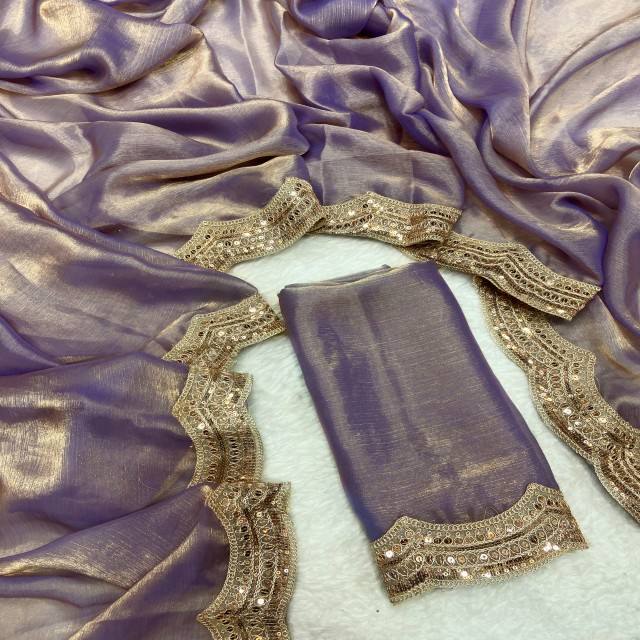 Vastra คอทเทจผ้าชีฟองเนื้อแข็งลาเวนเดอร์ประดับด้วยขอบประดับ