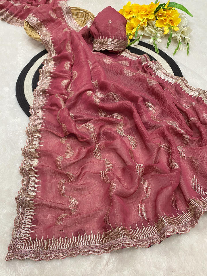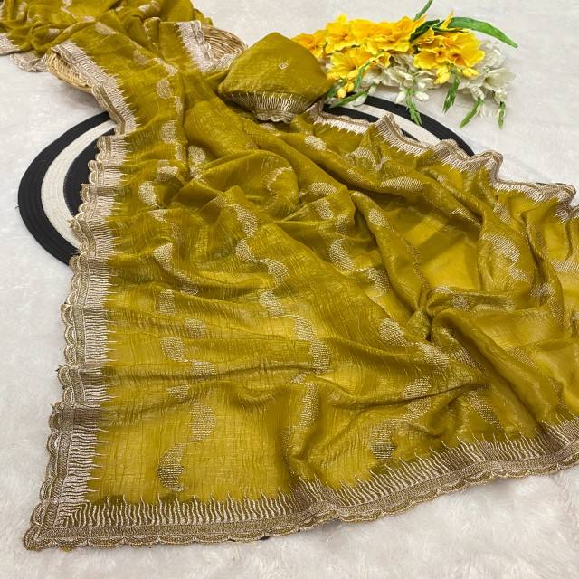 VASTRA COTTAGE Premium Crunchy Silk Saree with Elegant Embroidery Cutwork Border Designer Bollywood Style Party Wear Saree