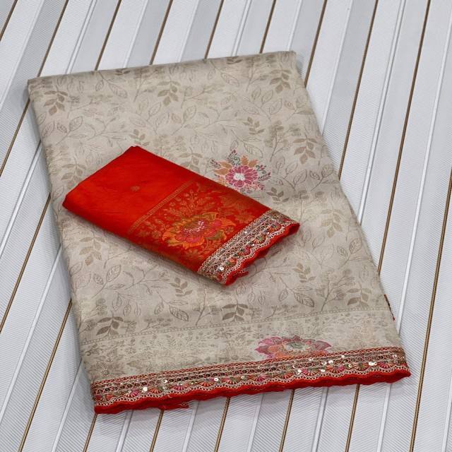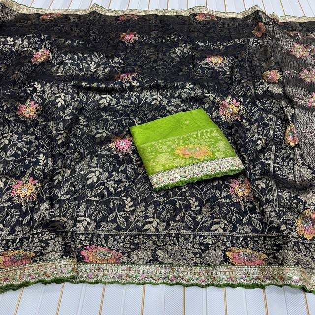 ผ้าไหมโดลาพรีเมียม VASTRA COTTAGE พร้อมงานปักมีนาการีและซารี ขอบผ้าปักด้วยด้ายซีเควนซ์และเส้นด้ายต่างสี พร้อมเสื้อคลุมตัดสี