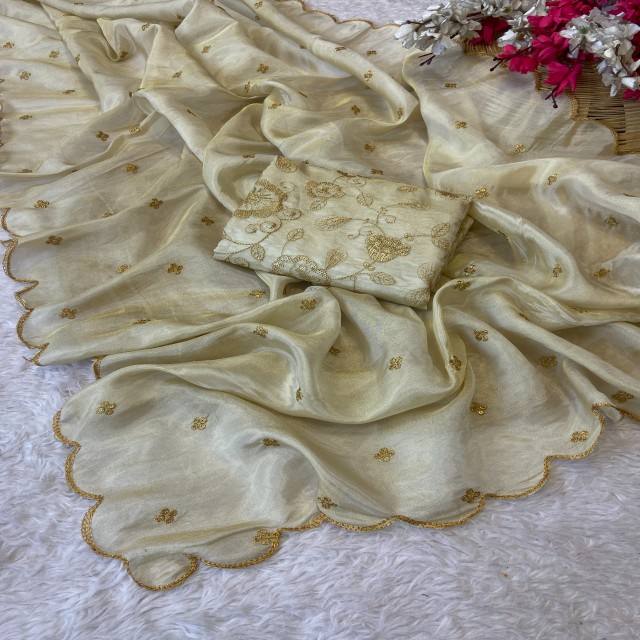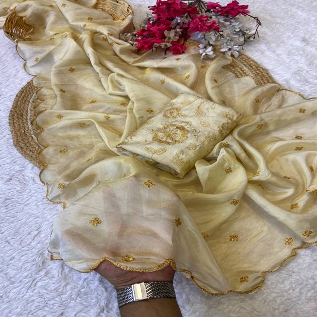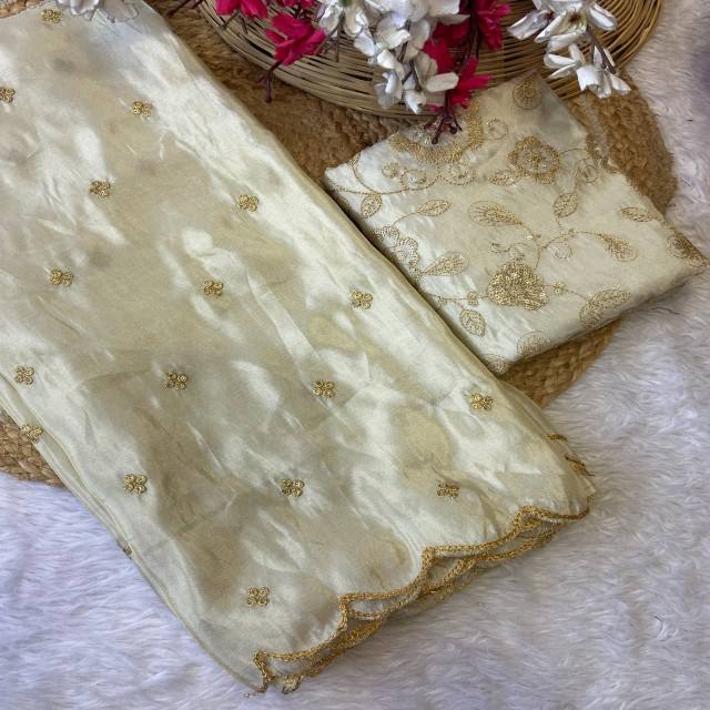 ผ้าไหมคอสมอสย้อมสีได้ รุ่นพรีเมียม VASTRA COTTAGE พร้อมงานปักเลื่อมประณีตและขอบลายหยัก