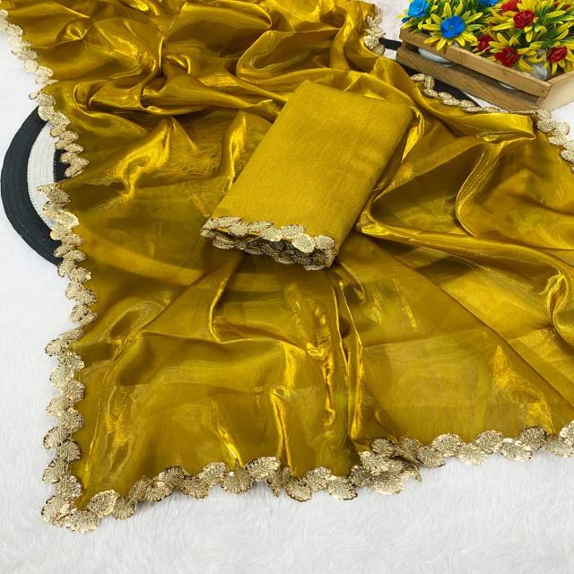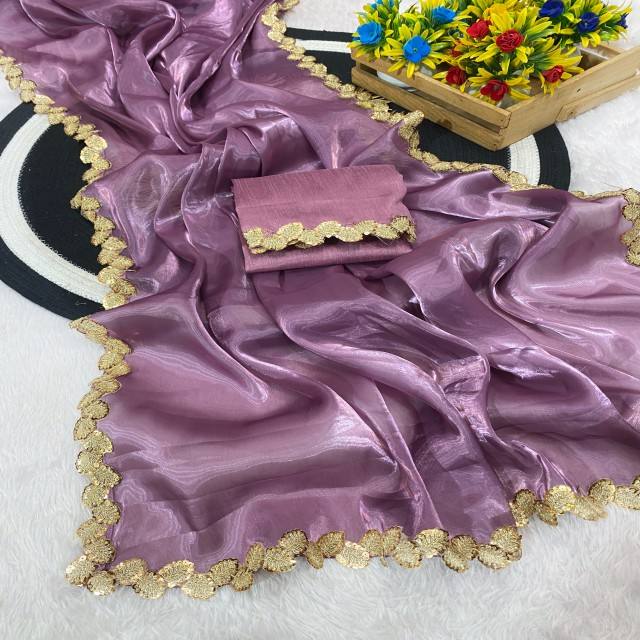 ชุดส่าหรีผ้าไหมออร์แกนิคอทเทจ Vastra พร้อมงานปักหลายชิ้นอย่างประณีตและขอบลูกไม้คล้ายหอยเชลล์