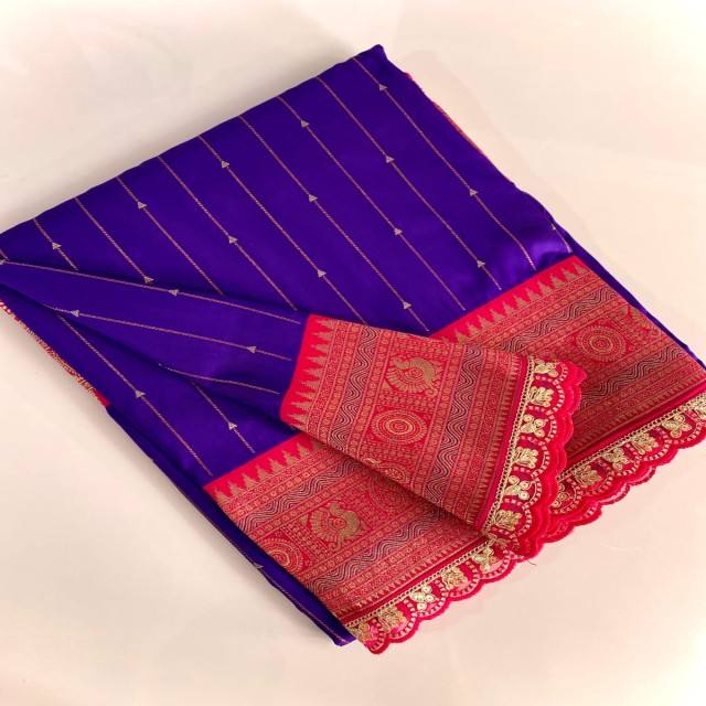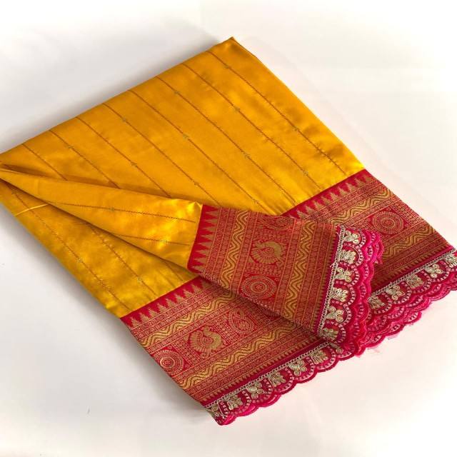 ผ้าไหมพายทานีพรีเมียม VASTRA COTTAGE พร้อมลายทอประณีต ขอบผ้าตัดกันอย่างสวยงาม ปาลลูหรูหรา พร้อมลูกปัดปักลายฉลุ
