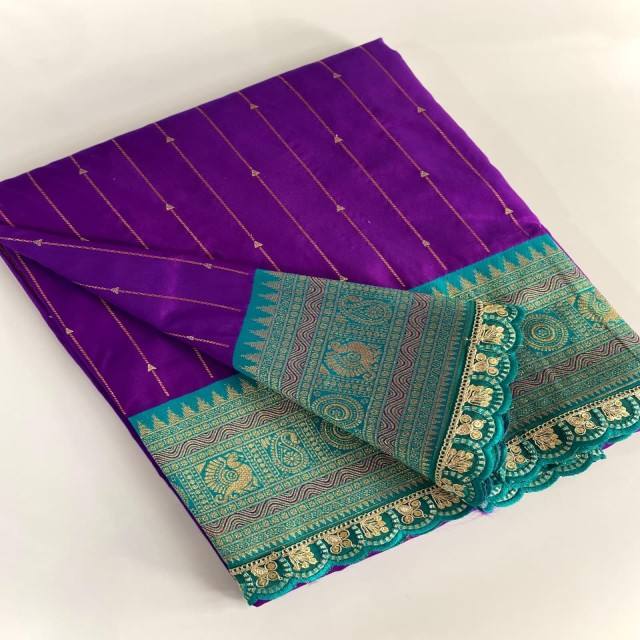 ผ้าไหมพายทานีพรีเมียม VASTRA COTTAGE พร้อมลายทอประณีต ขอบผ้าตัดกันอย่างสวยงาม ปาลลูหรูหรา พร้อมลูกปัดปักลายฉลุ
