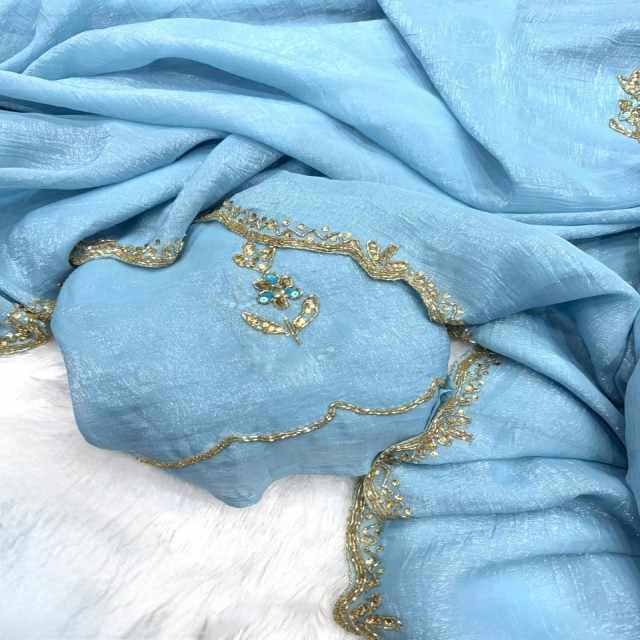 ผ้าซารี VASTRA COTTAGE พรีเมียมเนื้อนุ่มพร้อมงานปักมือ Khatli สวยงาม พร้อมผ้าสำหรับตัดเสื้อสตรีที่มีสไตล์