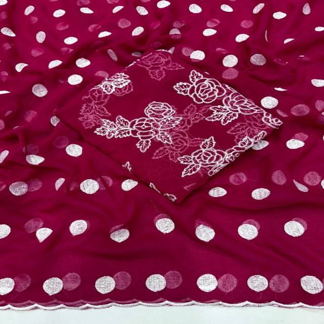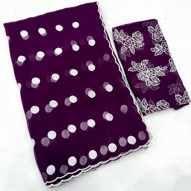 ผ้าซารีดีไซเนอร์ VASTRA COTTAGE รุ่นพรีเมียม ผ้าจอร์เจตเนื้อนุ่ม พร้อมเสื้อปักลายจุด ผ้าเนื้อแท้ คอลเลคชั่นดีไซเนอร์