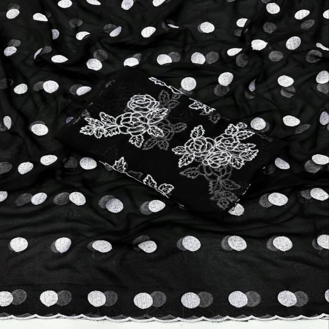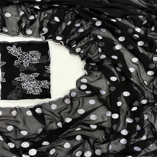 ผ้าซารีดีไซเนอร์ VASTRA COTTAGE รุ่นพรีเมียม ผ้าจอร์เจตเนื้อนุ่ม พร้อมเสื้อปักลายจุด ผ้าเนื้อแท้ คอลเลคชั่นดีไซเนอร์