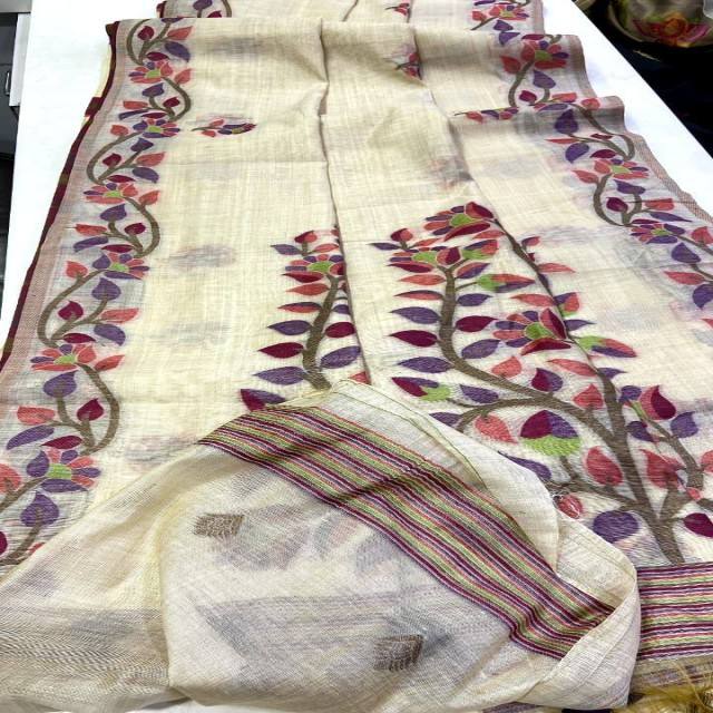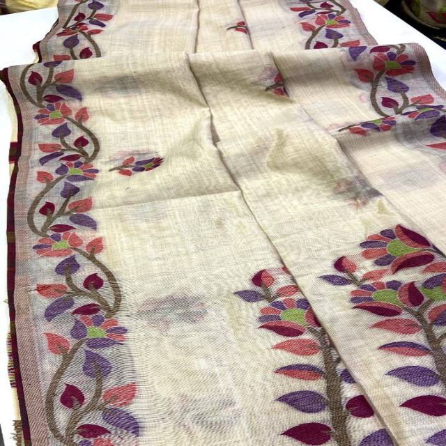 ผ้าส่าหรี VASTRA COTTAGE ผ้ามูก้าคอตตอนเนื้อนุ่มระดับพรีเมียม พร้อมลายดอกไม้หลากสีสันสดใส ขอบผ้าทอลายหรูหรา ชุดพื้นเมืองสุดหรู