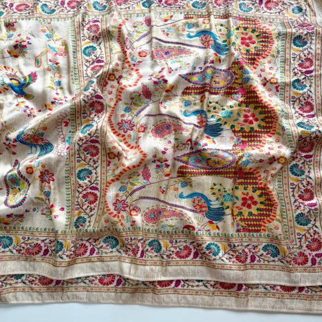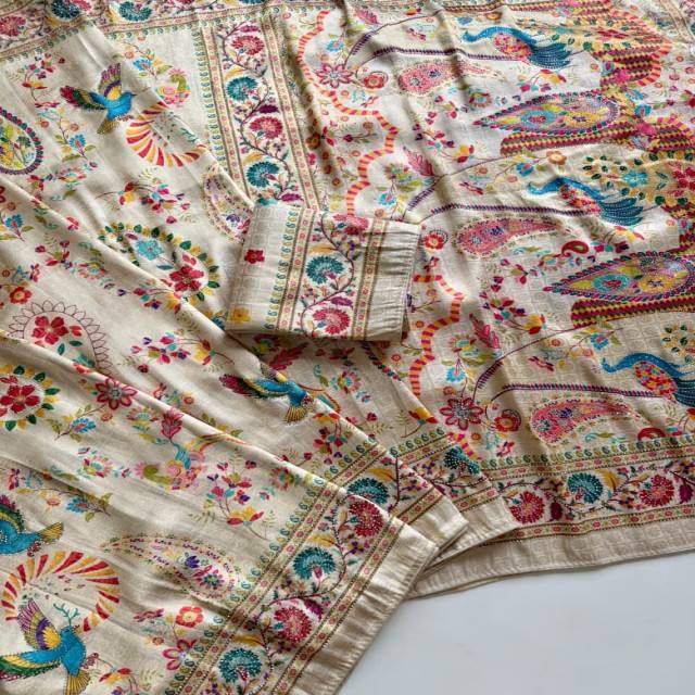 ผ้าไหมวิสโคสเนื้อนุ่มพิมพ์ลายดิจิตอลแบบจาการ์ด ผสมไนลอนแท้ ยี่ห้อ VASTRA COTTAGE พร้อมงานปักมือประดับคริสตัลสวารอฟสกี้ สำหรับทำผ้าส่าหรี