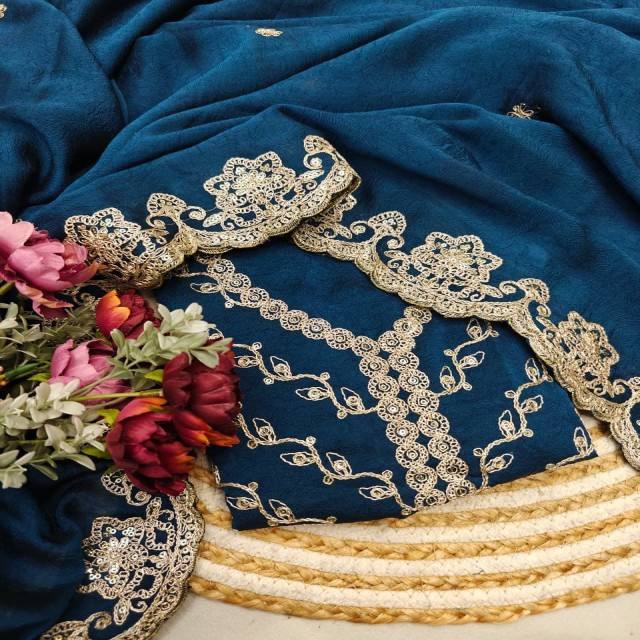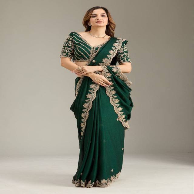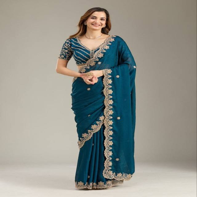 VASTRA COTTAGE Soft Rangoli Crush Silk Saree with Heavy Coding Sequence Work Cutwork Border and Designer Rangoli Crush Blouse