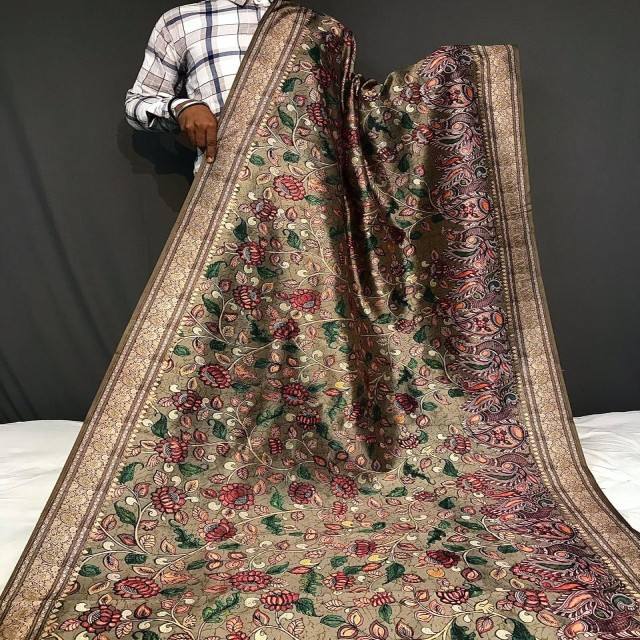 ผ้าไหมเนื้อนุ่ม VASTRA COTTAGE ลายพิมพ์ผสมผสานแบบ Kalamkari สีสันสวยงาม พร้อมเสื้อคลุมดีไซน์เนอร์พิมพ์ลายเข้าชุด
