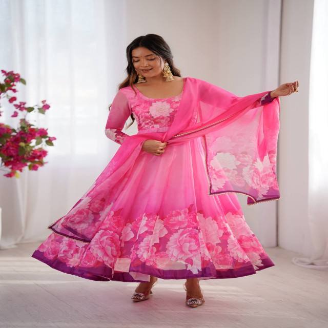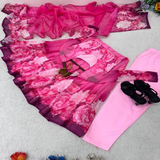 ชุดเดรสผ้าออร์แกนซ่าลายพิมพ์ดิจิทัล VASTRA COTTAGE สำหรับผู้หญิง พร้อมกางเกงขายาวประดับริบบิ้นและผ้าคลุมไหล่