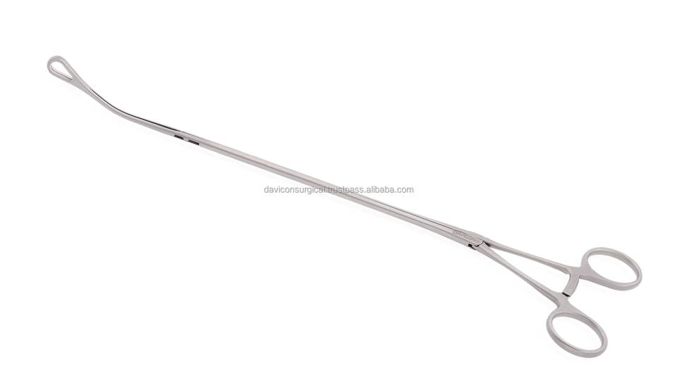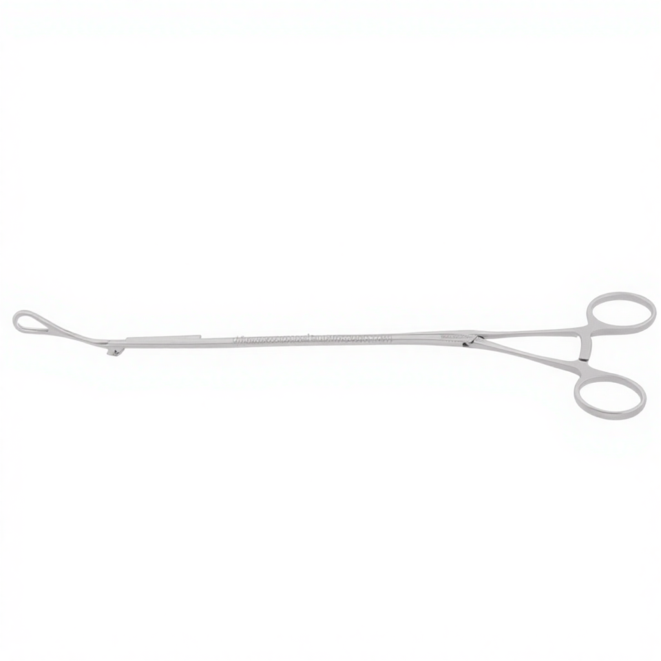คีมจับเนื้อเยื่อแบบโค้งซ้าย VATS Foerster - ปากคีมแบบร่องหยักรูปไข่ 12.5 มม., ด้ามจับขนาด 5 มม., พร้อมรatchet, ความยาวใช้งาน 9.5 นิ้ว (24 ซม.), ความยาวทั้งหมด 13.5 นิ้ว (34 ซม.)
