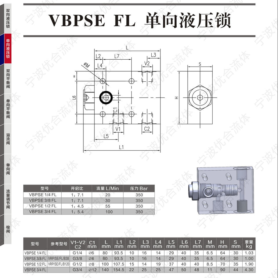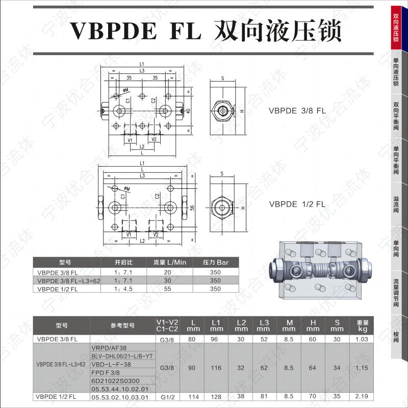 ตัวล็อคไฮดรอลิกแบบแผ่นสองทาง รุ่น VBPDE ซีรีส์ 41B สำหรับกระบอกสูบขาตั้ง
