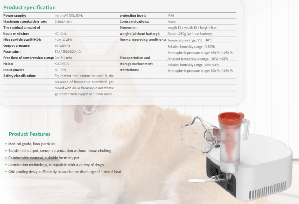 เครื่องพ่น VCAL-2อเนกประสงค์สำหรับแมวและสุนัขเครื่องพ่นยาที่ใช้ในโรงพยาบาลสัตว์สัตวแพทย์