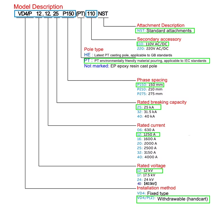 VD4 EL-PT Series 12kV Vacuum Circuit Breakerหมายเลขรุ่น