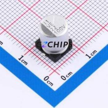 ตัวเก็บประจุแบบอิเล็กโทรไลต์อะลูมิเนียม SMD รุ่น VE-220M2ATR-0810, ขนาด D8xL10 มม. 22uF 20% 100V 8 มม.