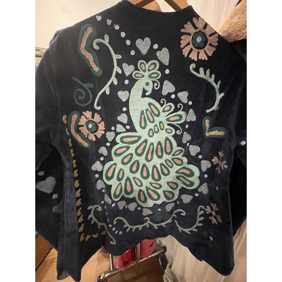 เสื้อแจ็คเก็ตกำมะหยี่ลายยูงแกะสำหรับผู้หญิง สีครามเข้ม ย้อมสีแบบย้อนกลับได้ ทำจากหนังแกะ ตกแต่งด้วยการเย็บแบบควิลท์ ปักลายสไตล์โบโฮ เสื้อคลุมสำหรับใส่ภายนอก
