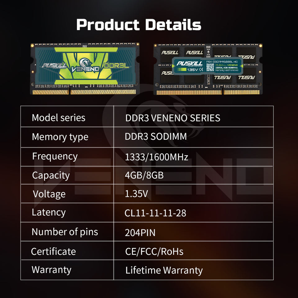VENENO Ddr3 4gb 8gb 1333mhz 1600mhz หน่วยความจํา Ram สําหรับแล็ปท็อป