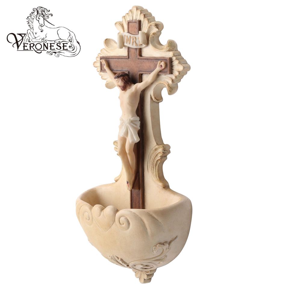 VERONESE DESIGN RELIGION HOLY WATER FONT JESUS CROSS HOME DECORATION HAND PAINTED ARTISTIC RESIN CRAFTS Figurine Art Collectible