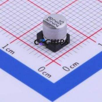 ตัวเก็บประจุอิเล็กโทรไลต์อะลูมิเนียมแบบ SMD รุ่น VES220M1ETR-0505, ขนาด D5xL5.3 มม. 22uF 20% 25V 5 มม.