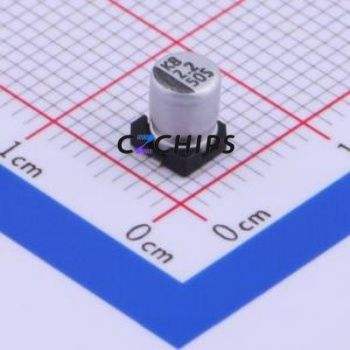 ตัวเก็บประจุอิเล็กโทรไลต์อะลูมิเนียมแบบ SMD รุ่น VES2R2M1HTR-0405, ขนาด D4xL5.3 มม., ความจุ 2.2uF, ค่าความคลาดเคลื่อน 20%, แรงดันไฟฟ้า 50V, ขา 4 มม.
