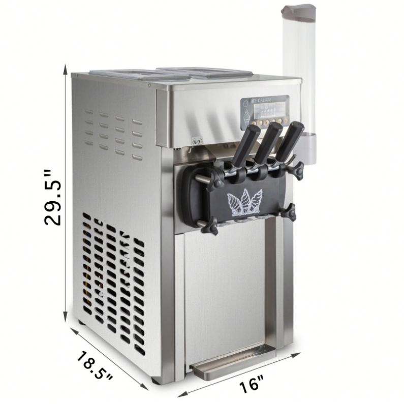 Vevor เครื่องทำไอศกรีมบนเคาน์เตอร์ทำจากสแตนเลสใช้งานได้3รสชาติ