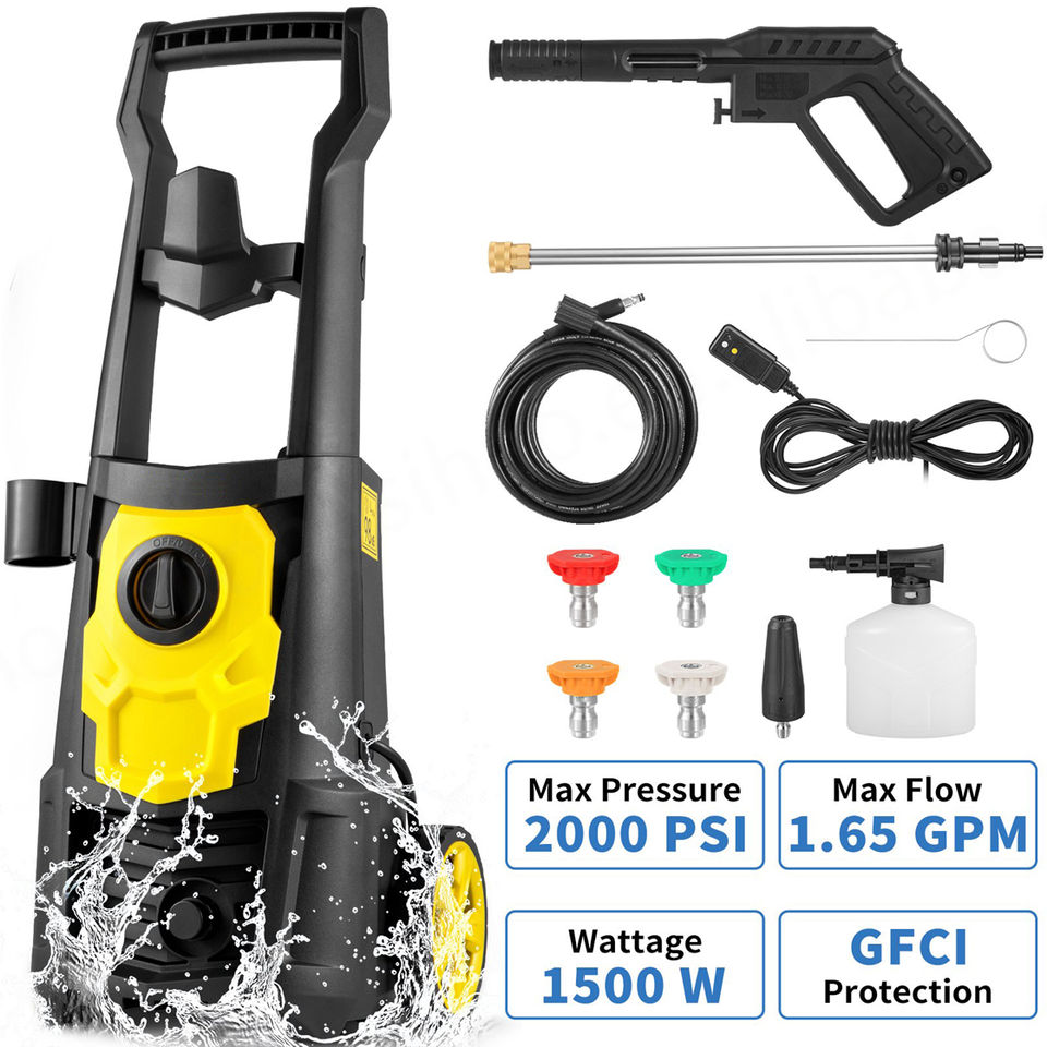 หุ่นยนต์ทำความสะอาดท่อไฟฟ้า vevor 2000 PSI สูงสุด1.65 GPM คู่มือใหม่พร้อมท่อขนาด30ฟุตและรีล5หัวฉีดโฟม
