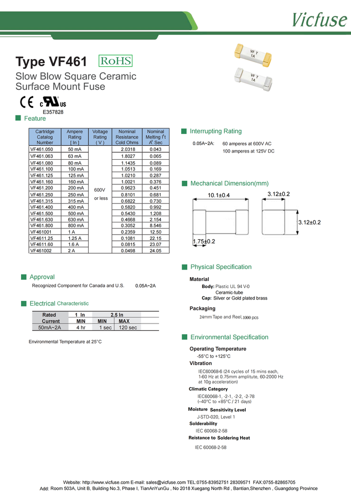 Recognized Component for Canada and U.S. 0.05A~2Aมาตรฐานความปลอดภัย
