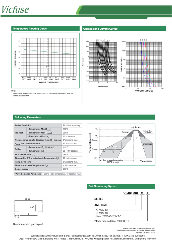 VF463ฟิวส์ติดผิวเซรามิกที่ออกฤทธิ์เร็วได้รับการรับรองจาก TUV 50mA-40A ประสิทธิภาพสูง125V-600V ความสามารถในการทำลาย150A