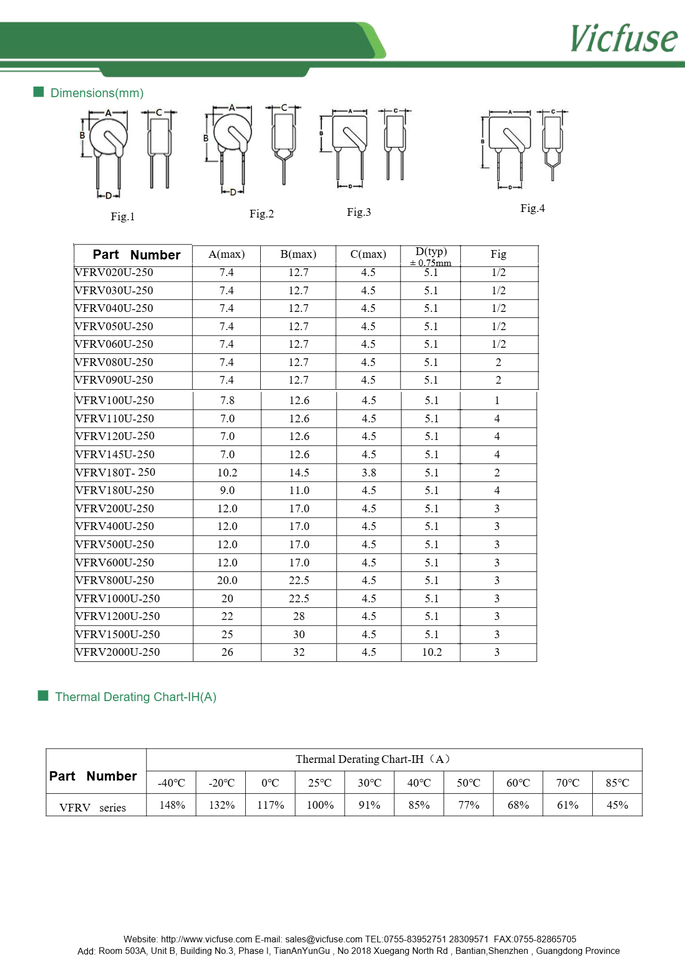 VFRV Radial Lead PPTC Resettable Fuse 250V 20mA-2A Auto-Reset Overcurrent Protector RoHS UL94V-0 Certified for Electronics