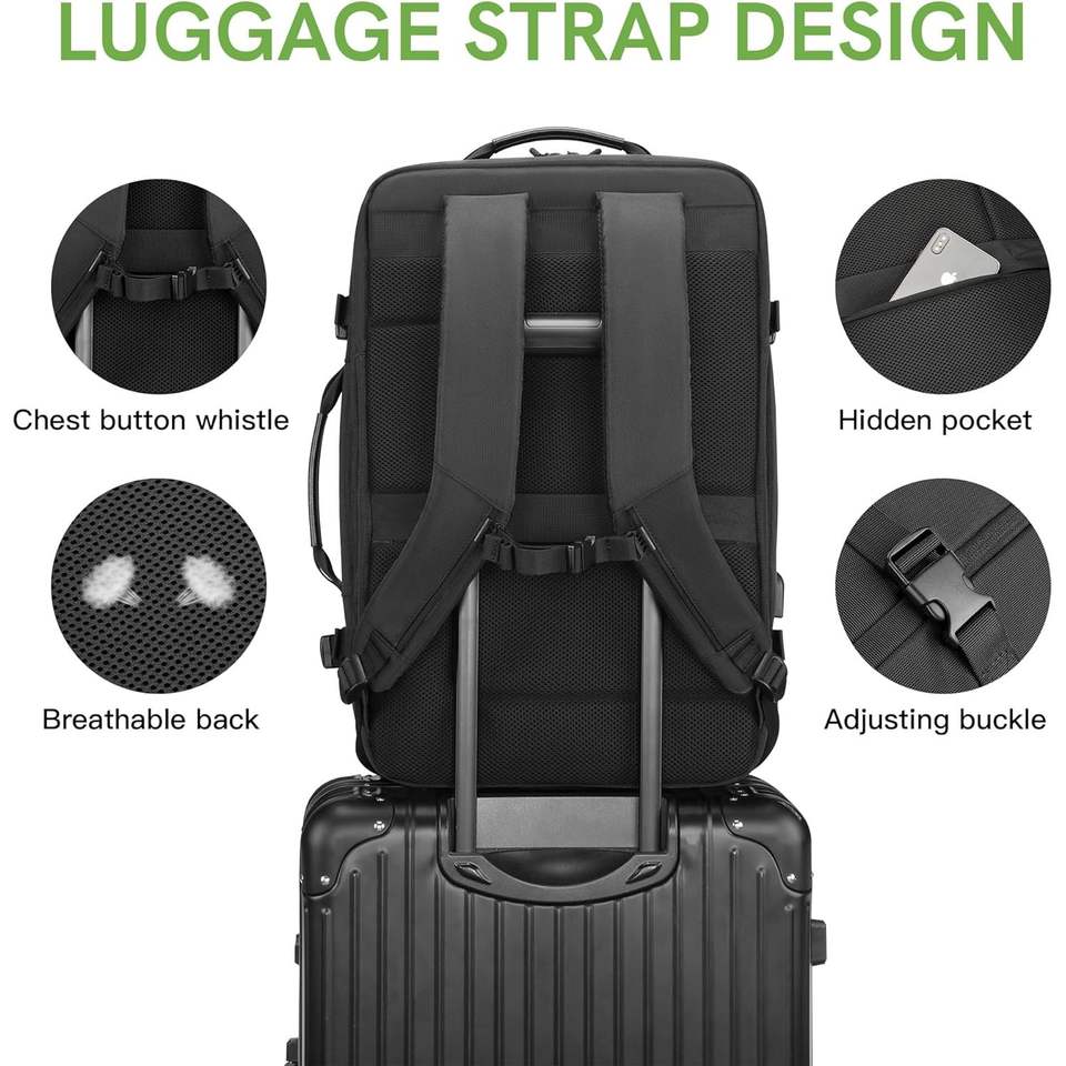 Vgoal กระเป๋าเป้สะพายหลังเดินทางแบบขยายได้กระเป๋าเป้สะพายหลังสำหรับถือขึ้นเครื่องได้รับการอนุมัติจาก Daypack กระเป๋าเอกสารสำหรับสัปดาห์ใช้งานกลางแจ้งแบบนุ่ม