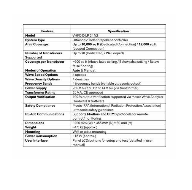 ระบบไล่หนูด้วยคลื่นอัลตราโซนิกดิจิตอลประสิทธิภาพสูง VHFO DLP 24 V2C