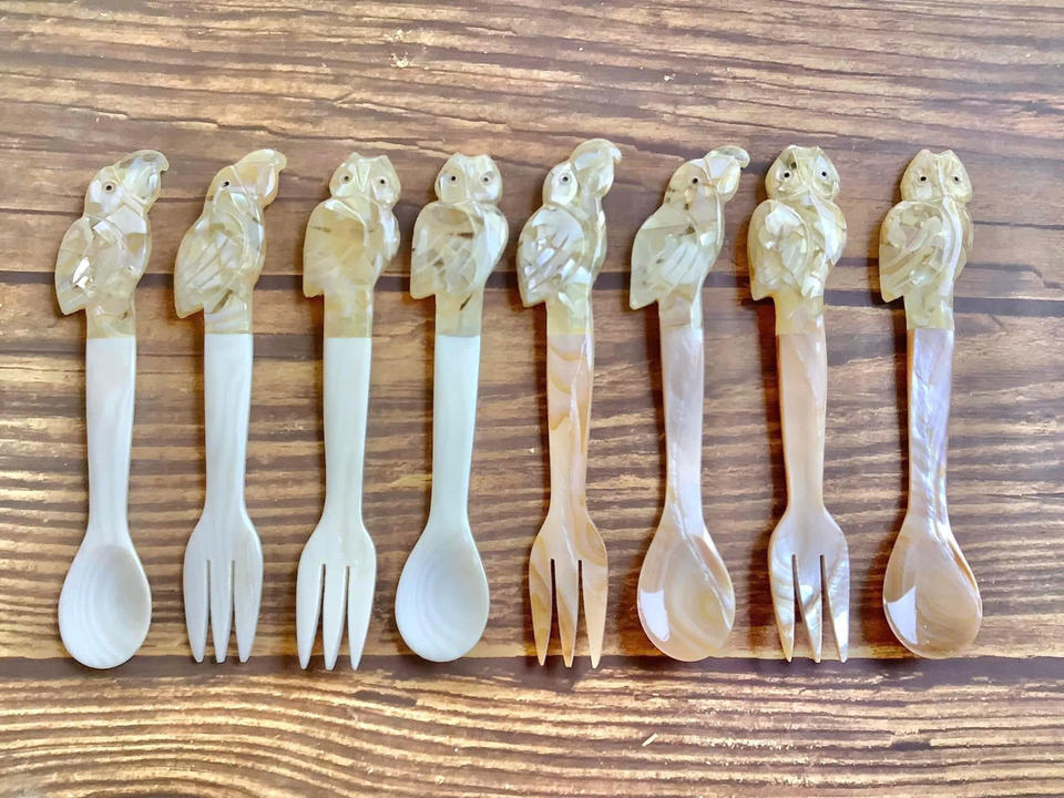 ช้อนเปลือกหอยทำด้วยมือเงางามสำหรับเสิร์ฟของหวานและตกแต่งสไตล์ชายฝั่ง