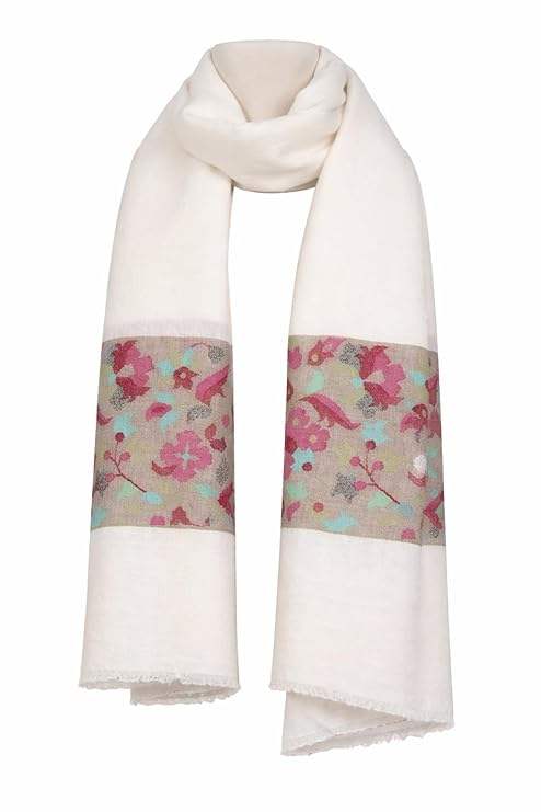 ผ้าคลุมไหล่แคชเมียร์วูลเนื้อละเอียด VIC สำหรับผู้หญิง ระบายอากาศได้ดี ดีไซน์หรูหรา ขอบลายดอกไม้ ทออย่างประณีต นุ่ม อุ่น พรีเมียม ขนาด 70x200 ซม.